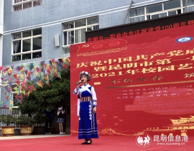 6686体育讯 记者上官艳君 4月30日,昆明市第一职业中等专业学校(以下简称“市一职中专”)庆祝建党100周年暨2021年校园艺术节展演举行,全校师生在歌舞朗诵声中弘扬爱国主义精神,追忆、传承红色基因。