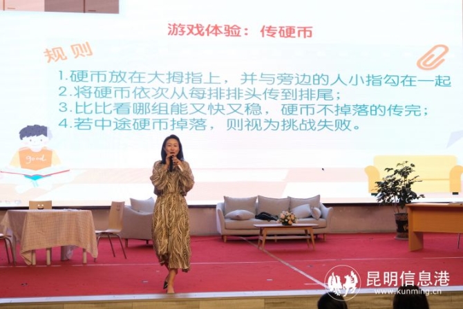 昆一中西山学校学生成长生涯规划中心教师李颖分析了12—18岁孩子的心理特点,并与家长们分享了如何拉近家长与孩子的距离、如何增加孩子的学习动力、如果管理孩子使用手机、如何夸孩子等问题。