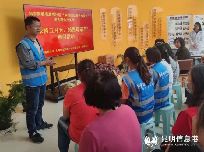 在现场,社区党委书记高晋云为妈妈们送上了节日的慰问。社区联合哈啰出行昆明团队的工作人员进行了我为群众办实事的“双报到双服务双报告”主题分享,并为母亲节活动提供了20份慰问品。
