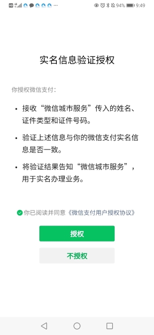 实名信息验证授权,勾选“同意政策”,点击“授权”