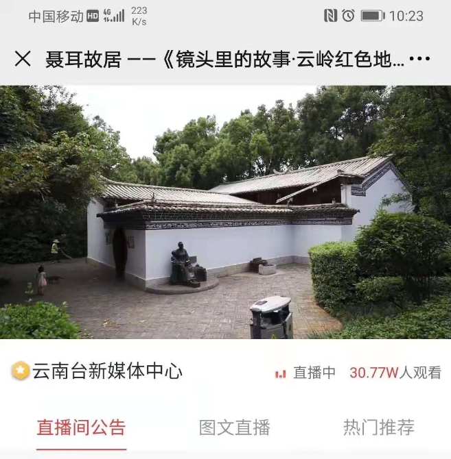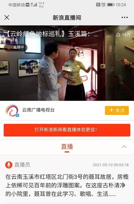 每当国歌《义勇军进行曲》响起,那激昂的旋律、雄壮的歌声,总是使人精神振奋,斗志昂扬,鼓舞着我们奋发,激励着我们前进。这首歌的曲作者就是玉溪之子——人民音乐家聂耳。5月11日,《镜头里的故事·云岭红色地标巡礼》大型主题系列直播暨党史学习教育直播之玉溪篇走进玉溪市红塔区聂耳故居。本次直播精心打造网上“云课堂”,带网友“云游”聂耳故居,了解聂耳和国歌的故事,牢记先辈使命,传承国歌精神,让“网络+”为党史学习教育提质增效。