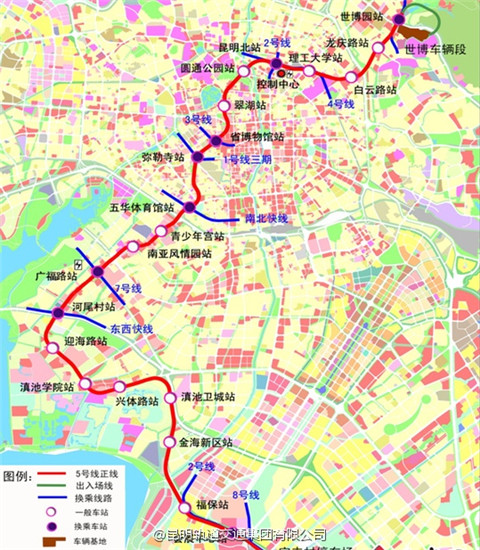 昆明地铁5号线贯穿主城核心区,沿线周边环境和地质条件复杂,线路不仅穿越圆通山片区岩溶地层、滇池片区软弱泥炭土层,并穿越多处密集建筑群、既有铁路和地铁等,高风险点多,实施难度大。