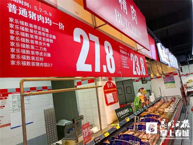 记者走访篆新、麻园、蔡家村等农贸市场也发现,与5月初相比,猪肉零售价已降1元至2元。现在普通猪后腿肉、猪前腿肉、猪五花肉零售价一般在36元/公斤~40元/公斤,脊肉、排骨肉在42元/公斤~45元/公斤。在家乐福龙泉路店,前腿棒骨、龙骨、脊骨为23.8元/公斤。