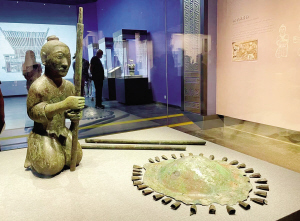 图为在昆明市博物馆青铜展上展出的“执伞俑”。