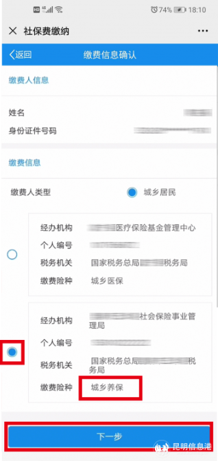 刷脸认证通过后选择【自主缴费】或【代他人缴费】,确认缴费信息后,点击【下一步】,即可缴费。
