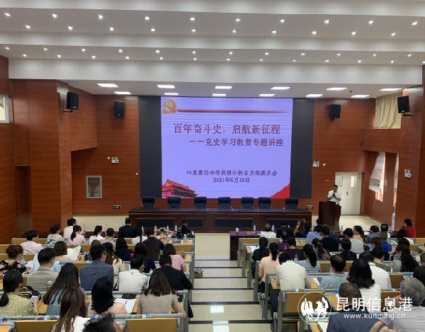 6686体育讯 记者黄彩英 通讯员梁丹 为迎接中国共产党成立100周年,教育广大党员干部学党史悟思想,以悟思想促进办实事,以办实事推动新局和引导全体教职工铭记红色历史、共话初心使命,黄冈中学昆明分校党总支5月18日组织开展了“奋斗百年路 启航新征程”主题党史学习教育讲座。