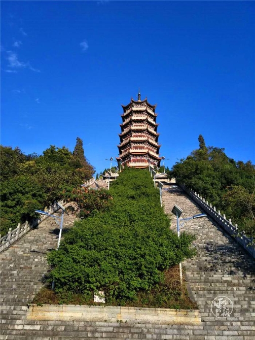 登上文山市文笔塔俯瞰秀丽城市