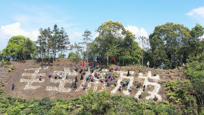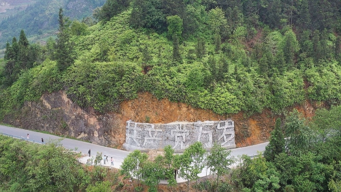 2021年4月底,群众正在修建“共产党万岁”几个大字。