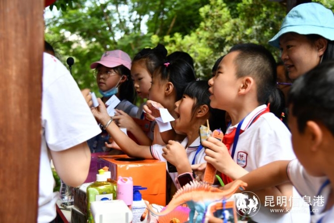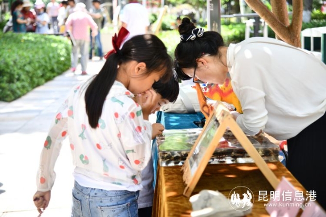 “你们知道吗,著名的生物进化论的提出者达尔文,在他成长为著名科学家之前,不过是一个不爱学习只爱花鸟鱼虫的富二代。但正是他对大自然的热爱与专注,让他改写了人们在追求真理过程中的重要启迪者。”昆明理工大学国土资源工程学院副教授申岑为居民开展了轻松幽默的科普讲座,讲的过程中结合带到现场的矿石标本,直观的让大家接触科学,接触地质生物,吸引了不少市民和学生的围观。