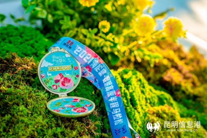 发布会上完赛奖牌实物亮相,本次半马及10公里完赛奖牌以金色及银色怀表作为设计原型,取其“钟情、钟意”之意,这是对跑者的表白,更是对昆明这座城市的告白。