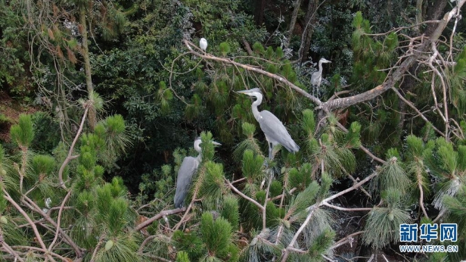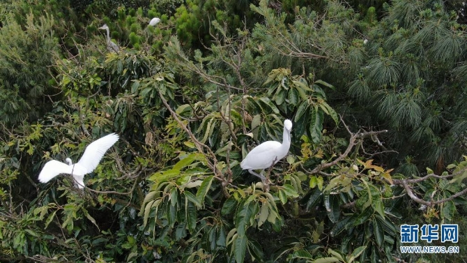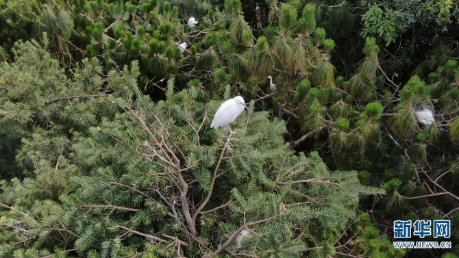 鹭群在古树上栖息(摄于5月13日)。新华网发(吴振坤 摄)