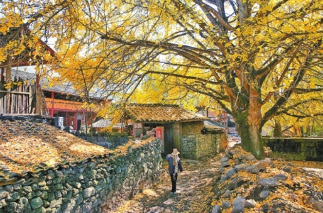 “六百年古村落,上万亩银杏林”,每逢金秋时节,位于腾冲市固东镇江东村的腾冲·银杏小镇总能吸引游客纷至沓来。这个满眼金色的童话世界因保存有树龄百年以上的古银杏1000余棵而声名远扬,同时这里拥有古老天然银杏林1万余亩3万余棵,被誉为“中国银杏第一村”。