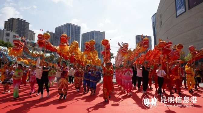 盘龙辖区传承了近三百年的草龙、板凳龙、竹叶龙、茶花龙、夜光龙、布龙……15支独具地域特色的民间民俗龙队齐聚新迎新城购物广场,刹那间,锣鼓敲响,金龙腾飞,在盘龙大地上,将龙文化、龙精神传遍城市和农村!