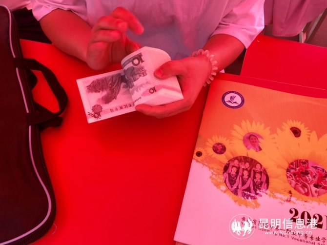 在财会专业的展台前,同学们快速地表演着点钞技术。记者上官艳君 摄