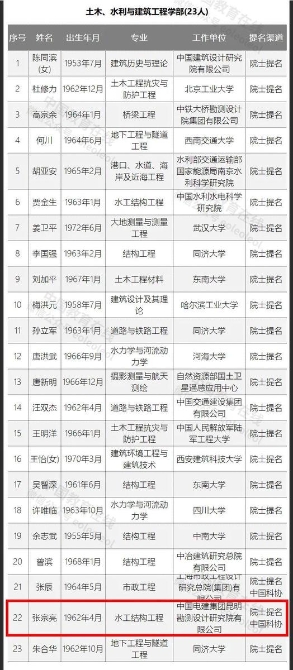 经中国工程院院士增选第一轮评审