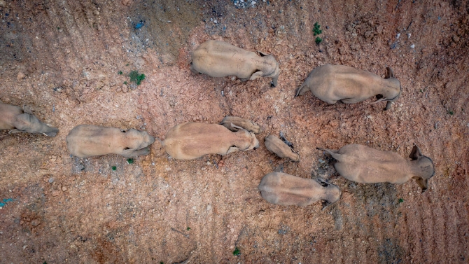 5月28日在云南省玉溪市峨山县境内拍摄的象群(无人机照片)。