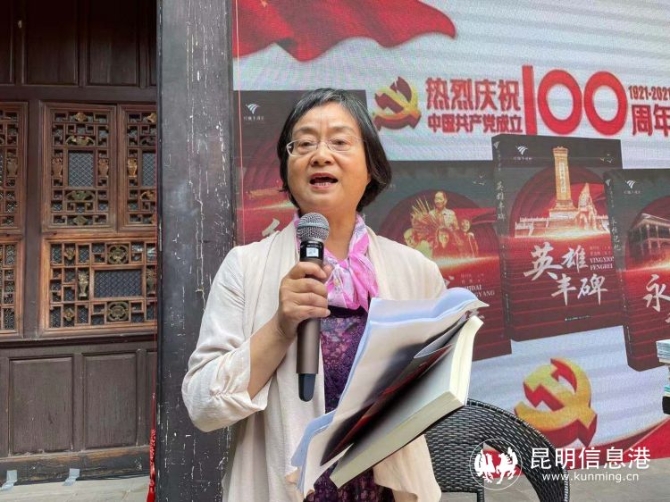 昆明儿童文学研究会会长唐凤莲致开幕词,她表示,为庆祝中国共产党建党100周年,昆明儿童文学研究会与云南晨光出版社合作,精心打造了爱国主义教育读物《红旗下成长》(丛书),并将于近期正式出版。丛书通过回顾中国共产党100年来的奋斗历程,旨在激发广大青少年的爱国热情,从小培育孩子们的民族精神,引导广大青少年树立正确的理想、信念、人生观、价值观,促进中华民族的伟大复兴。