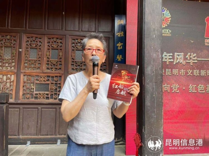 昆明儿童文学研究会名誉会长陈约红介绍“红旗下成长”(丛书)的写作故事