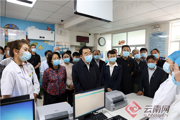 阮成发简要介绍了云南经济社会发展和卫生健康、疫情防控等工作情况。他指出,党的十八大以来,习近平总书记两次亲临云南考察,给云南各项工作提出了明确要求,谋划了发展蓝图。云南省委、省政府始终牢记习近平总书记对云南工作的重要指示精神,认真贯彻党中央决策部署,扎扎实实做好各项工作,全省经济社会发展上了一个新台阶。始终坚持把人民健康放在优先发展地位,加快推进卫生健康事业发展,医疗服务体系不断健全,医药卫生体制改革深入推进,公共卫生服务持续改善,健康扶贫任务全面完成,爱国卫生“7个专项行动”扎实开展。坚持人民至上、生命至上,全力以赴抓好疫情防控。扎实抓好基层医疗卫生工作,全省基层医疗条件显著改善、服务能力不断提升。云南省将认真按照调研组工作建议和要求,坚持抓好常态化疫情防控、县级医院建设、健康乡村建设等重点工作,推进卫生健康事业加快发展。