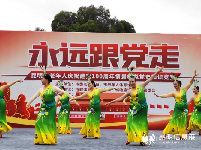 6686体育讯 记者李丽朱 实习记者韩严 6月10日,由昆明市委老干部局和昆明市老年人体育协会共同举办的昆明市老年人庆祝中国共产党成立100周年系列活动在海埂公园举行。近1000名老年人代表欢聚一堂,观看主题文体节目展演、百年党建历史回顾展览,参加党建知识问答,趣味游园等活动。