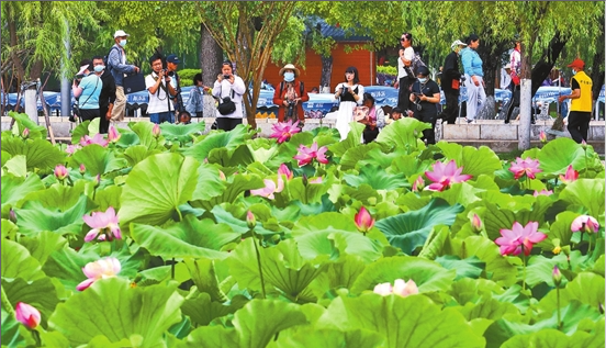 端午时节荷花开,吉祥如意送安康。昆明翠湖公园水光潋滟、荷香荡漾,吸引市民、游客前来赏花观景,尽情享受夏日时光。记者 杨峥 摄