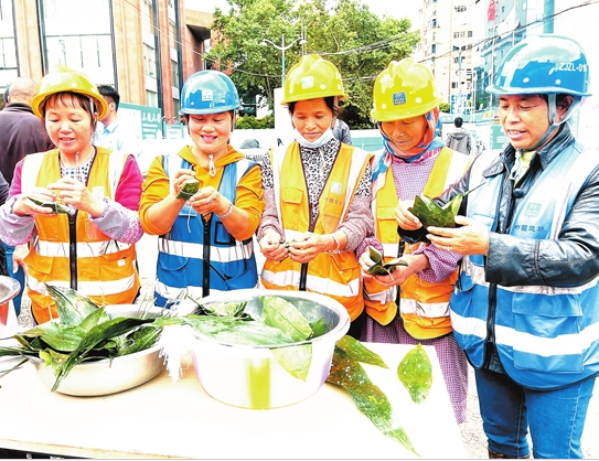 在全省在建最高楼——昆明春之眼商业中心工地旁,外来务工者与中建二局云南分公司项目部工作人员、昆明市拓东街道辖区居民欢聚一堂,包粽子、唠家常、看节目,共度端午节。“热情的云南人民让我们倍感温暖,一点都不孤单。”四川籍务工人员李师傅说。