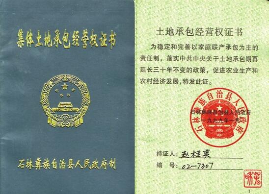 1999年第二轮农村土地承包颁发的土地承包经营权证书