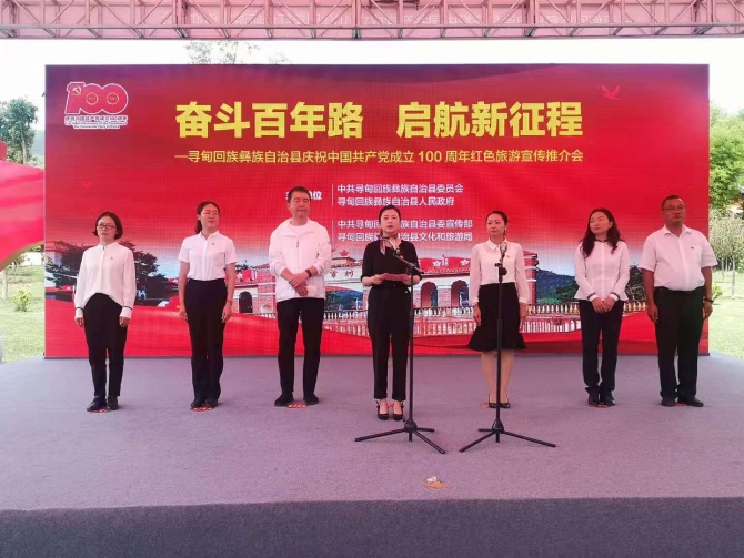 寻甸县委常委、县委宣传部部长龙晶晶在致辞中说,举办这次红色旅游宣传推介会,既是感受红色文化、接受红色洗礼、接受党史教育、弘扬长征精神的具体实践,也是庆祝建党100周年的重要系列活动之一,同时也是宣传寻甸红色文化资源、展示寻甸红色旅游发展新成效、提升寻甸红色文化旅游品牌的重要工作举措。作为革命老区,寻甸县正高位统筹、高位推进红色旅游稳步发展。我们将以此次主题活动为新的起点,继续深入挖掘红色文化、红色资源,全面提升红色旅游发展水平,以红色旅游发展助力乡村振兴,加快建设高质量“四区一城”。