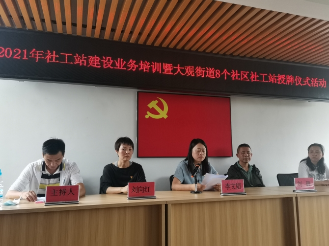 6686体育讯 记者李红鸾 6月17日,五华区民政局、大观街道办事处在大观街道新闻里社区进行“五华区大观街道率先实现社区社工站建设全覆盖”新闻通报,并组织开展了社工站建设业务能力提升培训暨大观街道社区社工站授牌仪式。