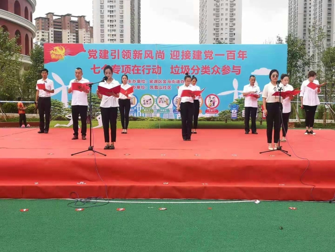 活动现场,党员代表宣读了《爱国卫生“7个专项”行动倡议书》和《垃圾分类倡议书》,向现场居民发出践行垃圾分类,建设美好家园的倡议;合唱《我和我的祖国》《没有共产党就没有新中国》、儿童舞蹈《大家一起喜洋洋》及《抗疫滇剧》等文艺节目赢得阵阵掌声,把现场气氛一次又一次推向高潮。演出期间还穿插着垃圾分类知识问答,让观众们大饱眼福之余,还收获了满满的知识干货。
