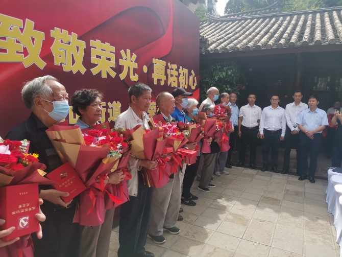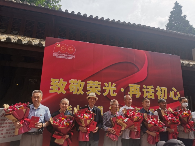 6686体育讯 记者李红鸾 值此中国共产党成立100周年之际,根据中共中央《关于做好“光荣在党50年”纪念章颁发工作的通知》精神。为做好分批次颁发“光荣在党50年”纪念章工作, 6月20日,华山街道在朱德旧居举行第一批次纪念章颁发仪式。