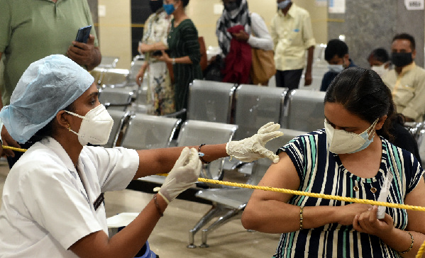 6月23日,一名女子在印度勒克瑙接种新冠疫苗。新华社发