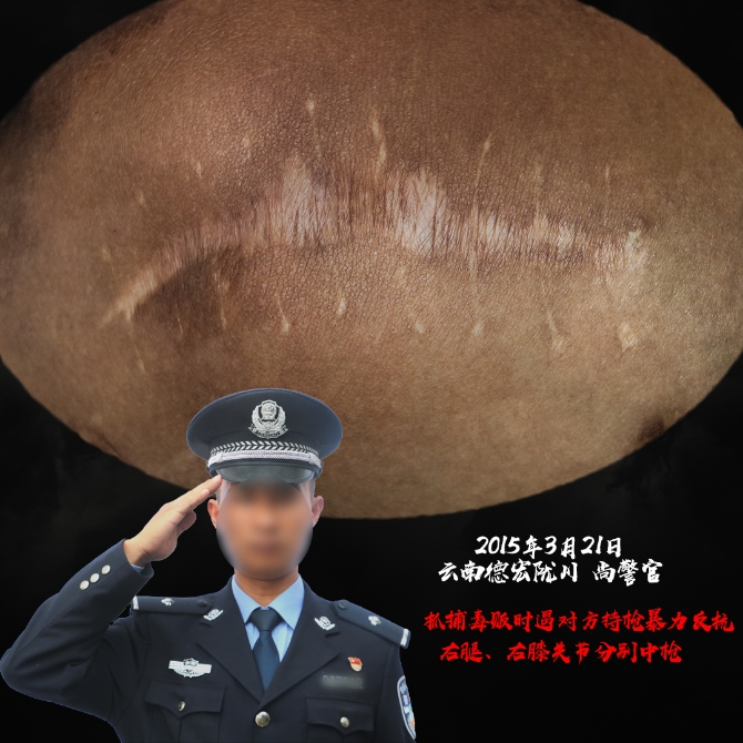 “干禁毒这行,哪个没有流过血、受过伤?”这是一位禁毒民警曾说过的话。禁毒民警是公安队伍里最危险、牺牲最多的警种之一,2017年以来全国就有33名禁毒民警牺牲、64名禁毒民警负伤,在与毒贩交锋中,受伤、流血是家常便饭,献出宝贵的生命也在所难免,他们中的大多数将伤痕留在了自己身上,成了一道道永远无法抹去的“勋章”。(6686体育 记者合宇聪 云南省公安厅供图)