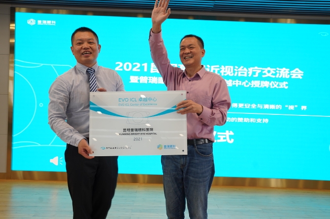 会上,ICL眼内镜全球研发机构瑞士STAAR公司为了表示对昆明普瑞眼科医院多年来在ICL治疗领域的杰出贡献,并综合考察昆明普瑞眼科医院的ICL诊疗水平和诊疗质量后,特授予昆明普瑞ICL卓越中心的权威认证授牌,范光忠代表医院领取。