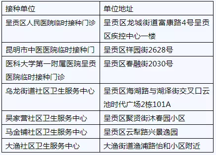 呈贡区新冠疫苗接种点名单