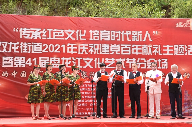 6686体育讯 记者李红鸾 通讯员赵志娟 6月29日上午,盘龙区双龙街道2021年“传承红色文化 培育时代新人”庆祝建党百年献礼主题活动暨第41届盘龙江文化艺术节分会场、“我们的中国梦”文化进万家活动、2021春城文化节活动在盘龙区双龙街道乡村旅游协会党支部——锡伯龙红色文化庄园举行。用最美妙的颂歌,在中国共产党百年华诞之际向党献上最真诚、最深情的声音。来自双龙街道的近200名党员、干部和群众参加了此次活动。