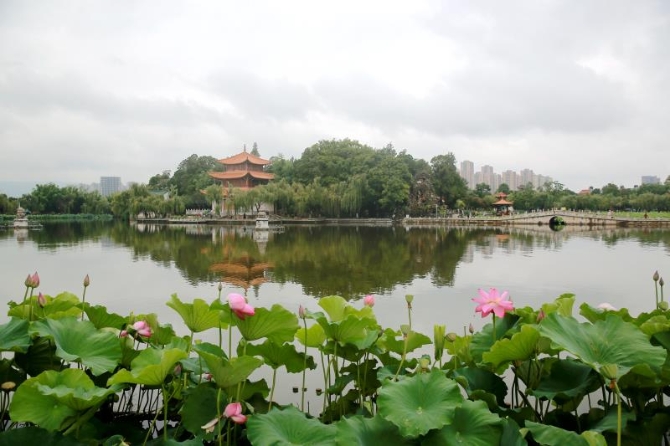 6686体育讯 记者杨雁 接天莲叶无穷碧,映日荷花别样红。6月29日,昆明市大观公园第十七届荷花展启幕,今年荷花的花朵显得尤其的大,其中不乏有浓烈松香味的“巨无霸”、曾获得全国荷花新品种一等奖的“足韵”和“足翠”、淡堇紫色的“春不老”等各地引进栽种的优秀荷花品种,大观楼长联中所描绘的“九夏芙蓉”景观令人陶醉。