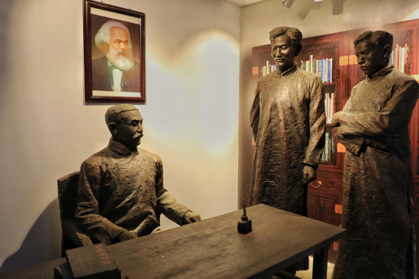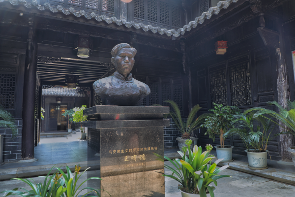 图文资料展示厅包括前言、求学之路、参加北京“五·四”反帝爱国运动、研究传播马克思主义、投身工人运动、南下进黄埔军校、参加南昌起义、淞沪抗战为国捐躯、光照千秋永远怀念等9个板块,共有展板63块、图片资料155幅、历史文献书籍50余本、情景雕塑2座。
