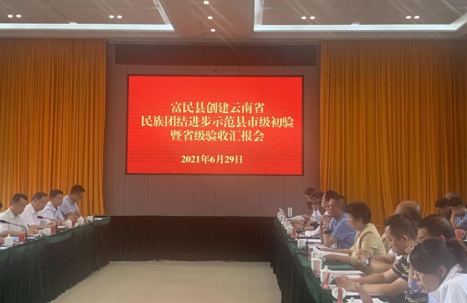 通过实地查看、听取汇报、查阅资料等方式,全面详细了解富民县持续推进民族团结示范创建工作的进展和成效后,省、市级验收组一致同意富民县通过了“云南省民族团结进步示范县”创建工作的初验。
