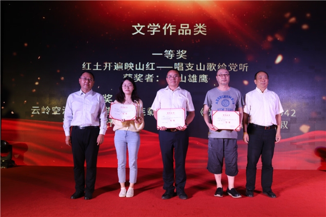 现场还举行了2021年“寻美•云南”主题作品征集活动颁奖,12组作品从2000余组征集投稿中脱颖而出,分获“放眼最美中国 发现云南之美”“我把党恩记心间 云岭先锋故事汇”“书画新时代 共绘彩云南”“新声献给党 边疆人民歌颂党”四个单元主题奖项。
