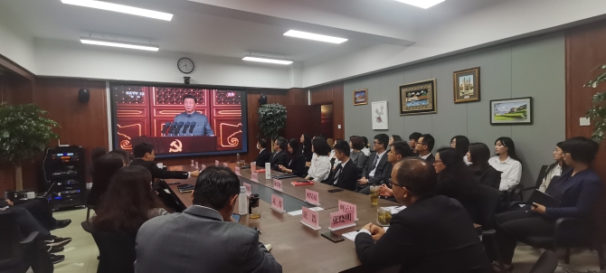 观看结束后,党组书记、主任张晓明带领全体党员,面向党旗,重温入党誓词。