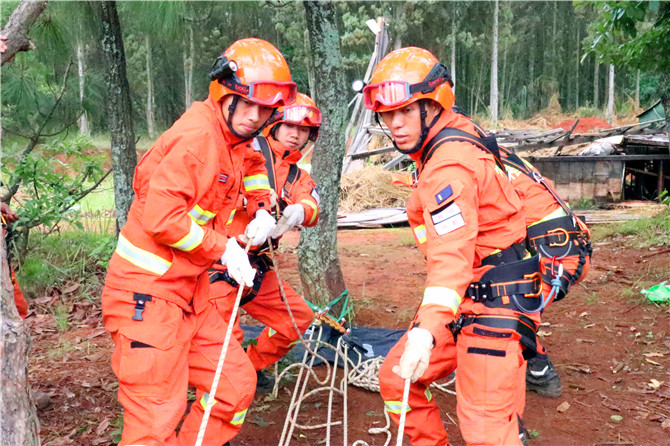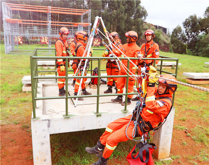 “训练场实打实,战场上才能硬碰硬。”特勤大队大队长窦国辉说,大队大胆打破以往的综合救援演练模式,着眼地质灾害特点规律,以游客意外失足坠落悬崖为背景,重点对勘察作业环境、指挥员现场救援指挥、确定救援方案、架设绳索拯救系统等各方面进行训、演、练。