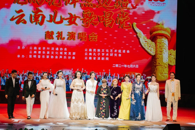 演唱会由云南省茶叶流通协会、云南民族文化艺术促进会、云南康乐茶文化城党支部、云南孔子学术研究会主办,由昆明音乐家协会声乐分会、云南省滇剧院承办。经过近一个月的精心策划和排演,以联唱、钢琴伴奏,独唱、合唱等形式,精心选唱19首组曲,突出鲜明的思想性和艺术性,向伟大的中国共产党成立100周年献礼!值得一提的是,我省茶界得知演唱会的策划后,不少企业积极参与。