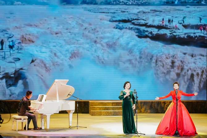 演出结束,全场起立,共同高唱《没有共产党就没有新中国》,热烈掌声经久不息。