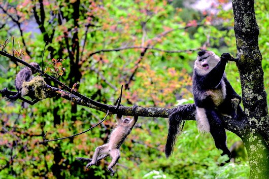 2020年5月23日在云南香格里拉滇金丝猴国家公园里拍摄的滇金丝猴。新华社记者 王长山 摄