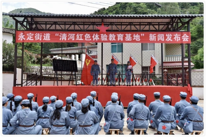永定街道党工委书记李晓吉介绍,“红军长征过富民”清河红色体验教育活动包括“参加红军、红军训练、红军讲堂、红军歌曲、红军长征、红军野餐、红军遗址、红军战斗、红军与彝家、十送红军”等10个项目。与其他红色教育基地相比,清河村体验式党员教育活动亮点在于教育内容丰富,把理想信念教育、革命传统教育、党性修养教育、民族团结教育相结合,形成集专题教学、体验教学、理论教学、情景教学等为一体的培训模式。