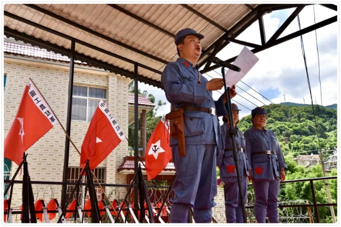 清河村党总支副书记余忠萍身穿红军服装站在队列中,与参加活动的党员干部们一起重温入党誓词。她表示,“红军长征过富民”清河红色体验教育基地的建成,是传承红军精神、发展清河乡村旅游的又一重要举措。通过十大红色体验项目,让更多的人走进清河,重温红色历史,打造清河村“红色旅游”名片,同时也促进了清河村经济、文化的发展。