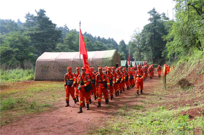 7月7日清晨,昆明森林消防支队卧云山野外驻训场,一阵急促的哨声响起,指战员们迅速整理好背囊,全副武装在帐篷前集合。