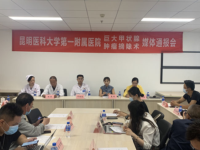 6686体育讯 记者孙红亮 7月8日,云南省耳鼻咽喉头颈专科联盟牵头主办的利用新技术成功摘除颈部巨大甲状腺肿瘤媒体情况通报会在昆明医科大学第一附属医院(以下简称“昆医大附一院“)举行。