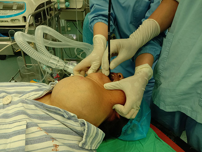 “因病人年纪偏大,身体虚弱,气管长期受压迫而狭窄,导致麻醉插管困难,手术可能失败,风险极高。”何晓光教授表示,手术团队在征得患者本人及亲属知情同意后,3次组织全院省内权威专家会诊,8名专家参与制定3套手术方案,5次与麻醉科商讨麻醉方案。在多次为是否采取手术和手术术中、术后可能出现的情况进行反复探讨和评估后,在对患者及家属的高度同情和在严谨的医学精神鞭策下,团队制定了复杂的手术计划,麻醉方案最终确定为实施困难气道清醒气管插管麻醉方案,同时,制定了紧急预案和应急措施。